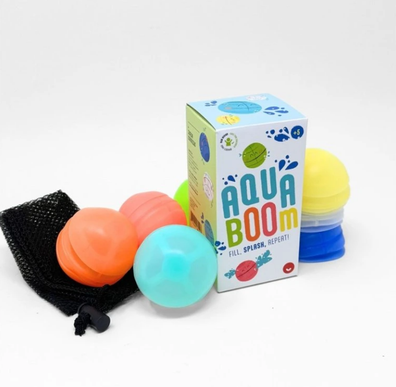 Užijte si letní vodní bitvy jednoduše a bez zbytečných příprav. Aqua-Boom jsou znovupoužitelné vodní bomby, které se naplní během chvilky ponořením do vody a jsou ihned připravené k hodu. Po dopadu se otevřou, stačí je zvednout a znovu naplnit – zábava tak může pokračovat pořád dokola.